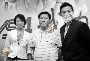 单联全(右)与冯一非宣传新剧。信息时报记者 朱元斌 摄